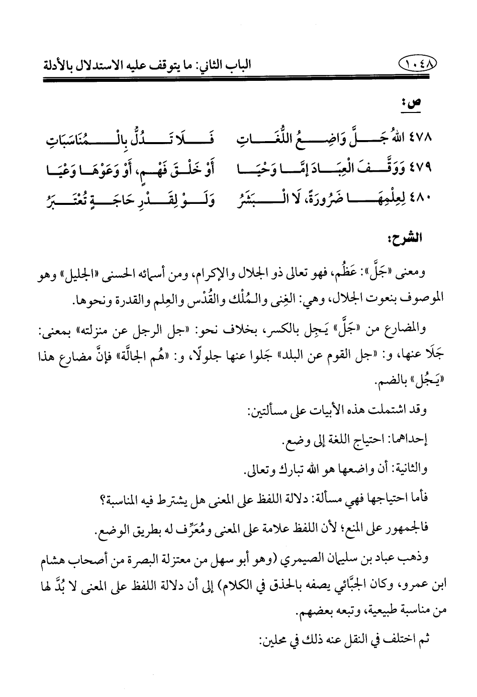 ٤٧٨ - اللهُ جَلَّ وَاضِعُ اللُّغَاتِ ... فَلَا تَدُلُّ بِالْمُنَاسَبَاتِ