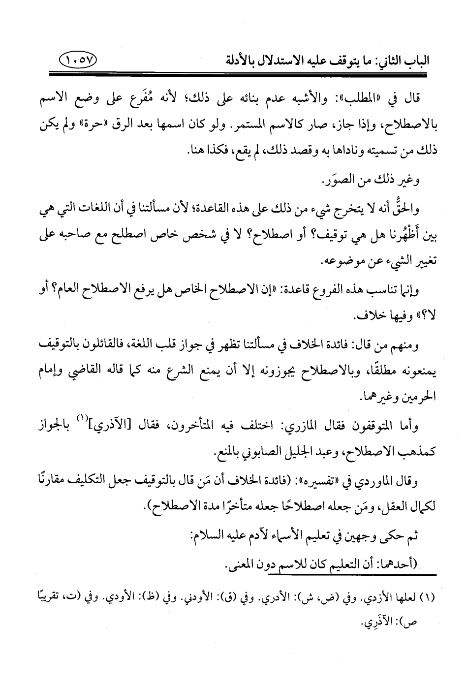 وأما المتوقفون فقال المازري: اختلف فيه المتأخرون، فقال [الآذري] (¬١) بالجواز كمذهب الاصطلاح، وعبد الجليل الصابوني بالمنع.