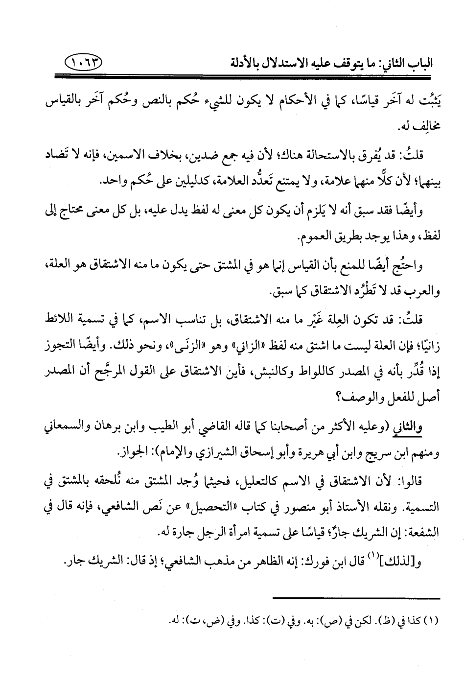 و[لذلك] (¬١) قال ابن فورك: إنه الظاهر من مذهب الشافعي؛ إذ قال: الشريك جار.