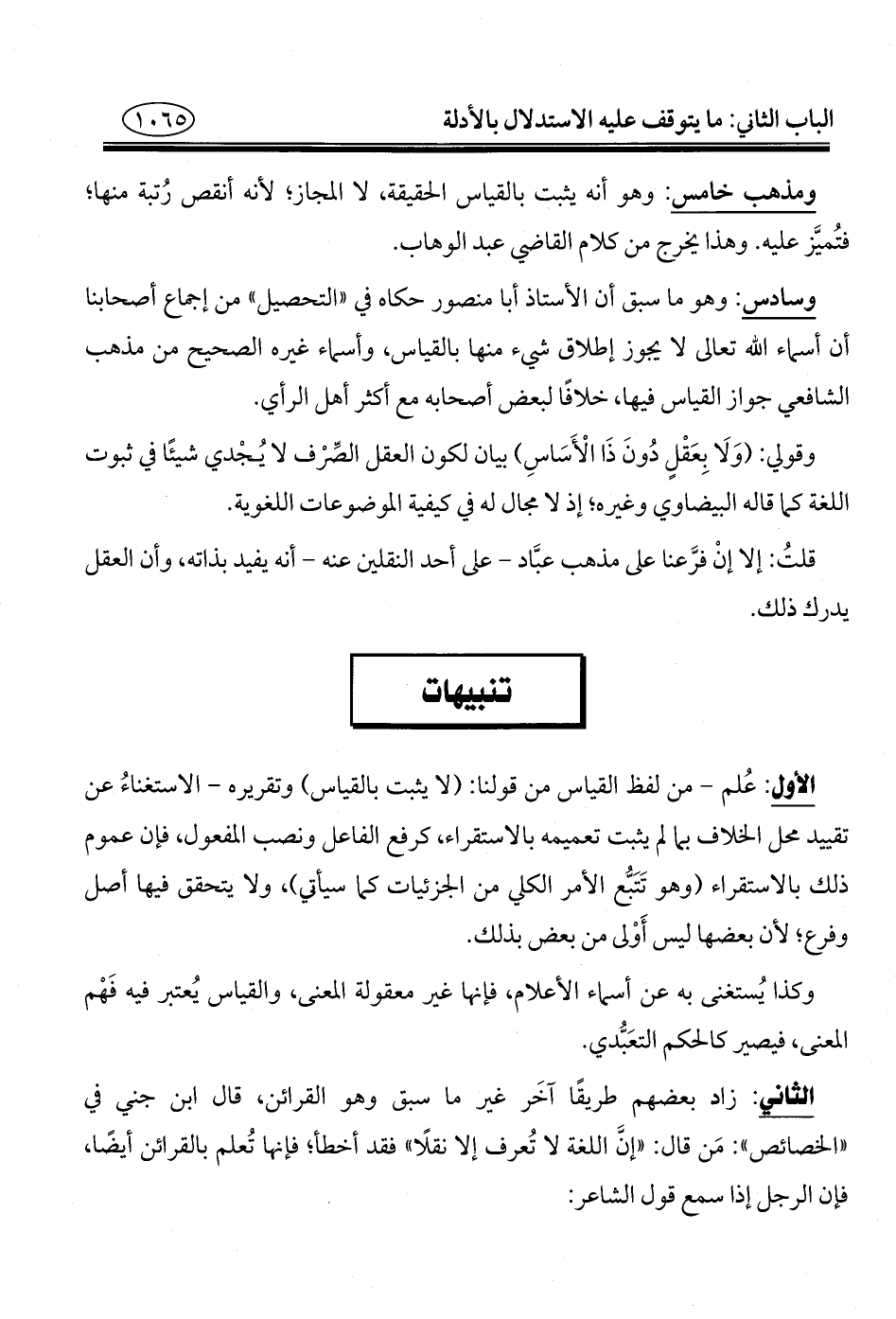 ومذهب خامس: وهو أنه يثبت بالقياس الحقيقة، لا المجاز؛ لأنه أنقص رُتبة منها؛ فتُميَّز عليه. وهذا يخرج من كلام القاضي عبد الوهاب.
