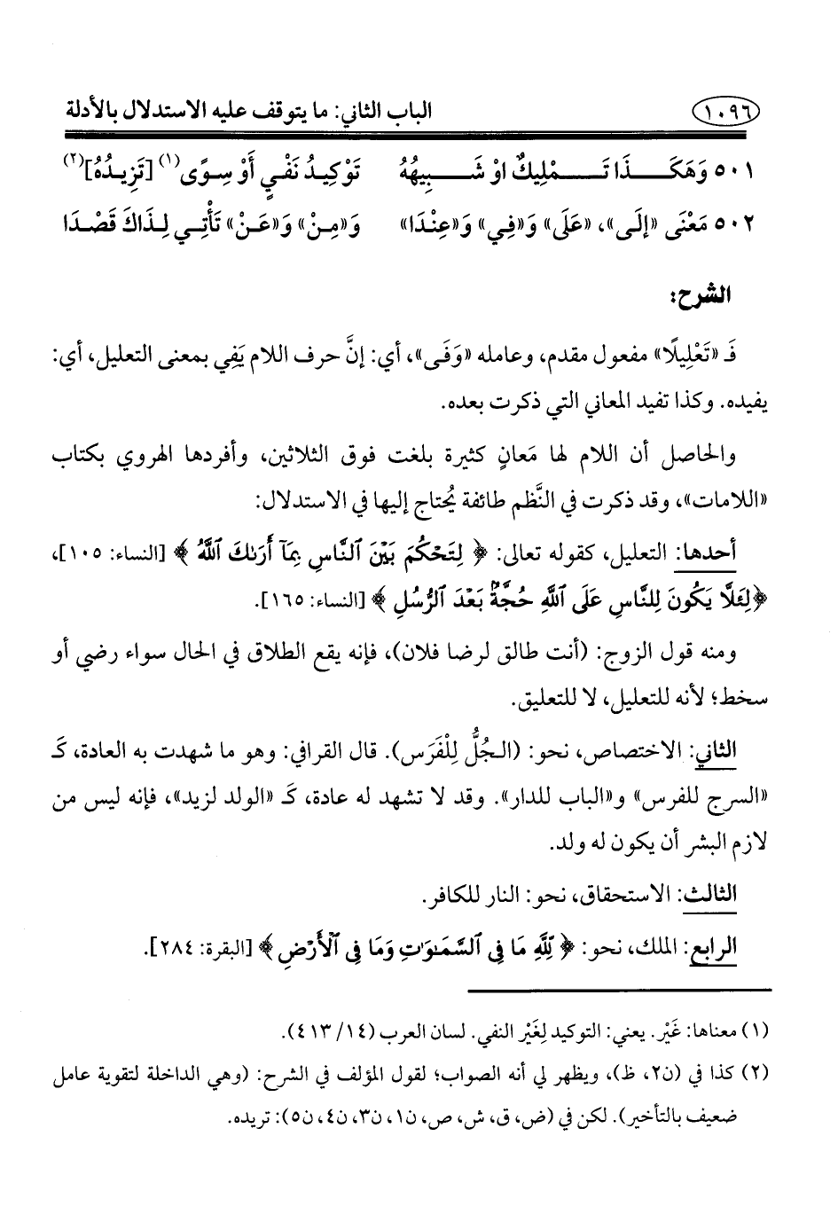 والحاصل أن اللام لها مَعانٍ كثيرة بلغت فوق الثلاثين، وأفردها الهروي بكتاب "اللامات"، وقد ذكرت في النَّظم طائفة يُحتاج إليها في الاستدلال: