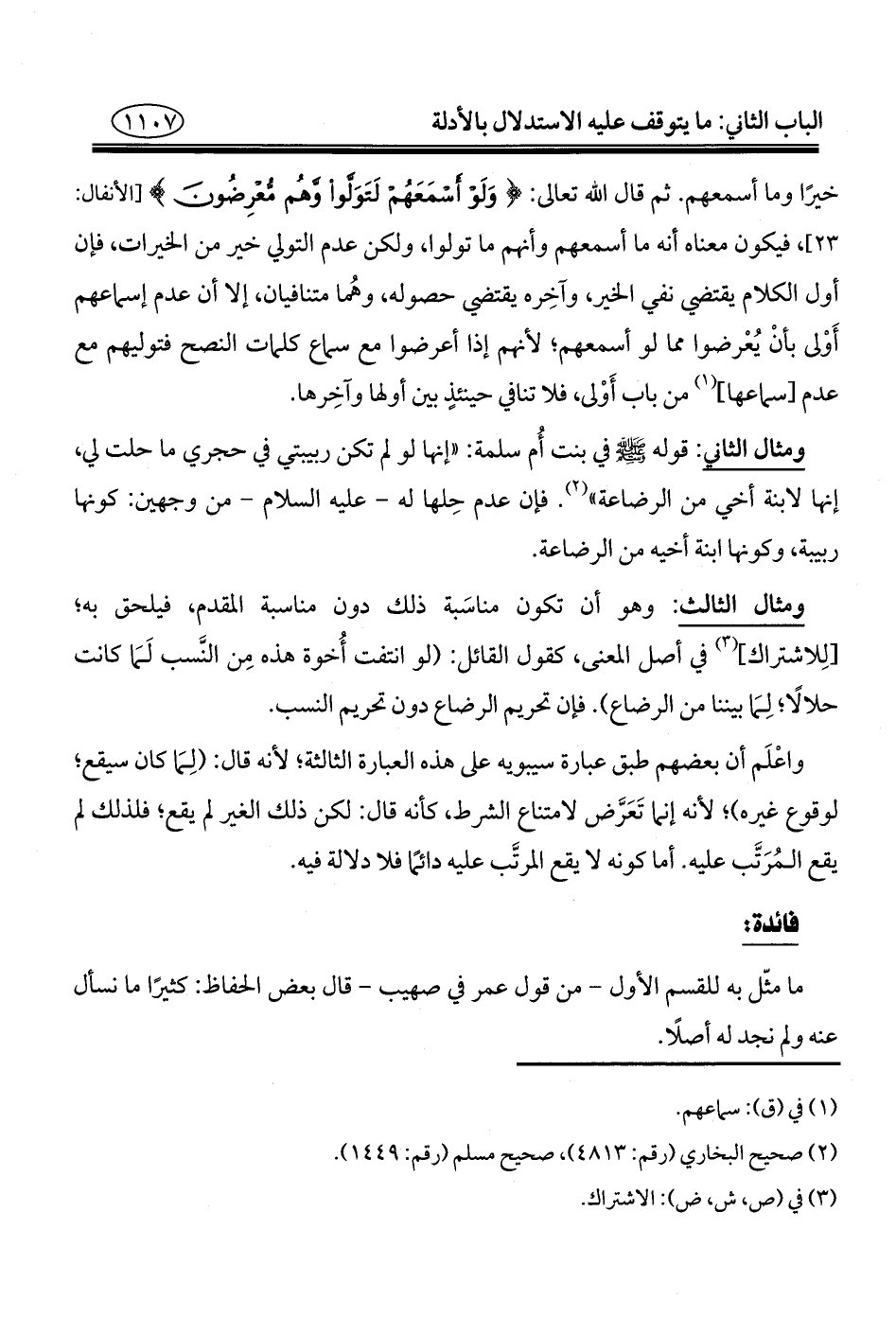 ومثال الثاني: قوله - صلى الله عليه وسلم - في بنت أُم سلمة: "إنها لو لم تكن ربيبتي في حجري ما حلت لي، إنها لابنة أخي من الرضاعة" (¬٢). فإن عدم حِلها له -عليه السلام- من وجهين: كونها ربيبة، وكونها ابنة أخيه من الرضاعة.
