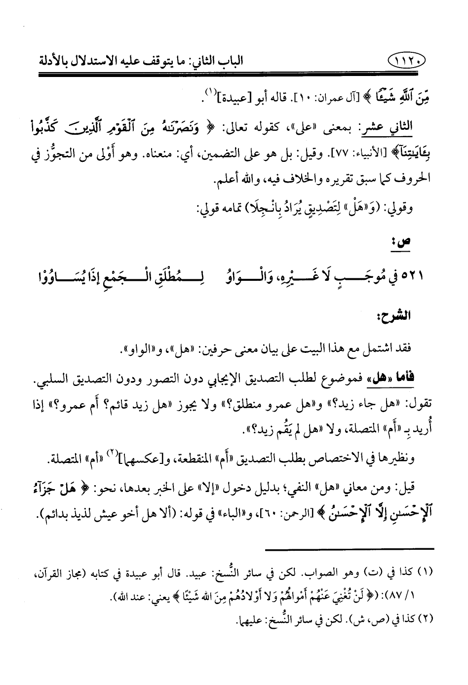 فقد اشتمل مع هذا البيت على بيان معنى حرفين: "هل"، و"الواو".
