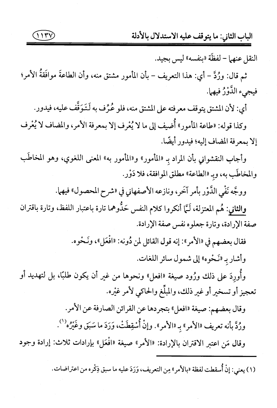 ثم قال: ورُدَّ -أي: هذا التعريف- بأن المأمور مشتق منه، وأن الطاعةَ موافَقةُ الأمر؛ فيجيء الدَّوْرُ فيهما.