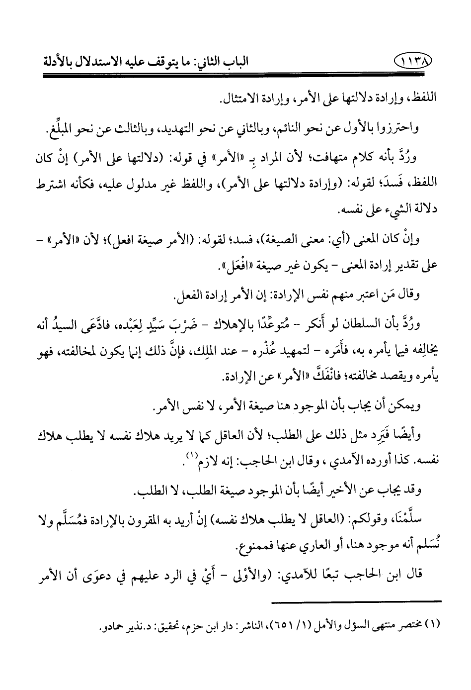 (¬١) مختصر منتهى السؤل والأمل (١/ ٦٥١)، الناشر: دار ابن حزم، تحقيق: د. نذير حمادو.