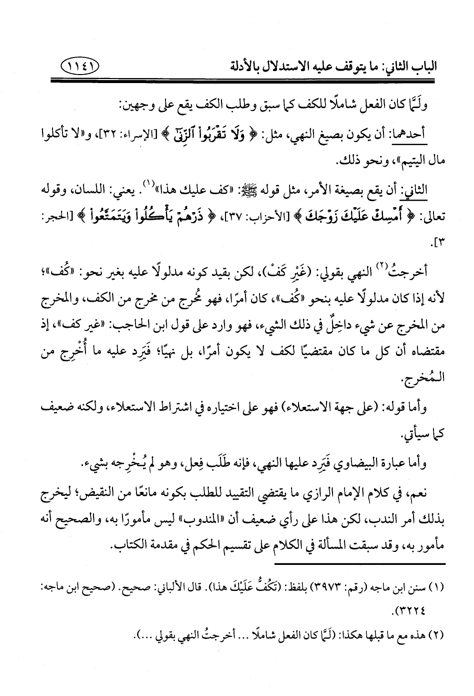 (¬١) سنن ابن ماجه (رقم: ٣٩٧٣) بلفظ: (تَكُفُّ عَلَيْكَ هذا). قال الألباني: صحيح. (صحيح ابن ماجه: ٣٢٢٤).