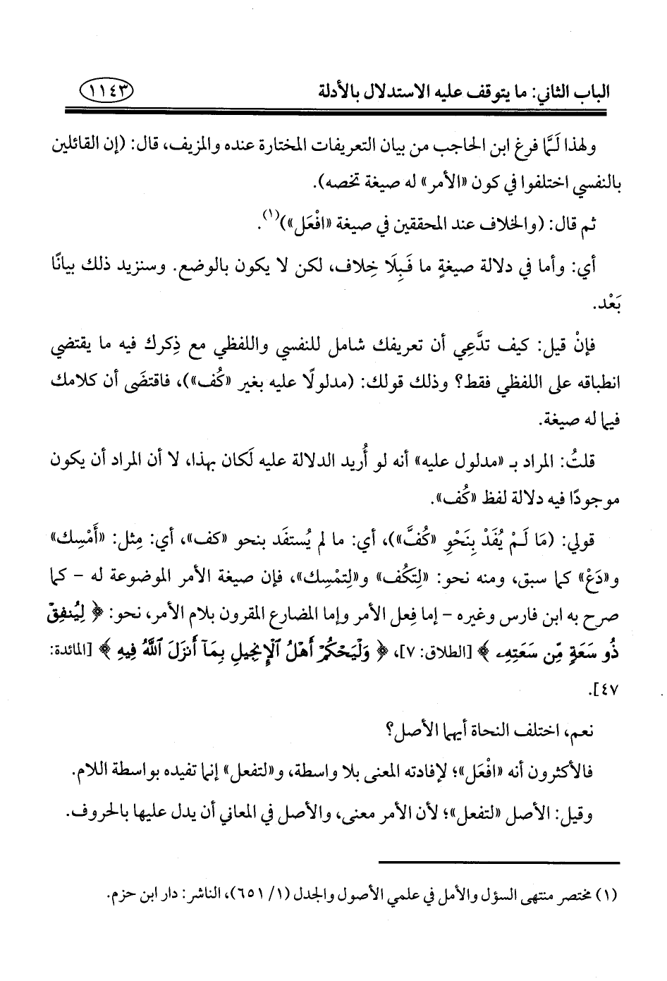 (¬١) مختصر منتهى السؤل والأمل في علمي الأصول والجدل (١/ ٦٥١)، الناشر: دار ابن حزم.