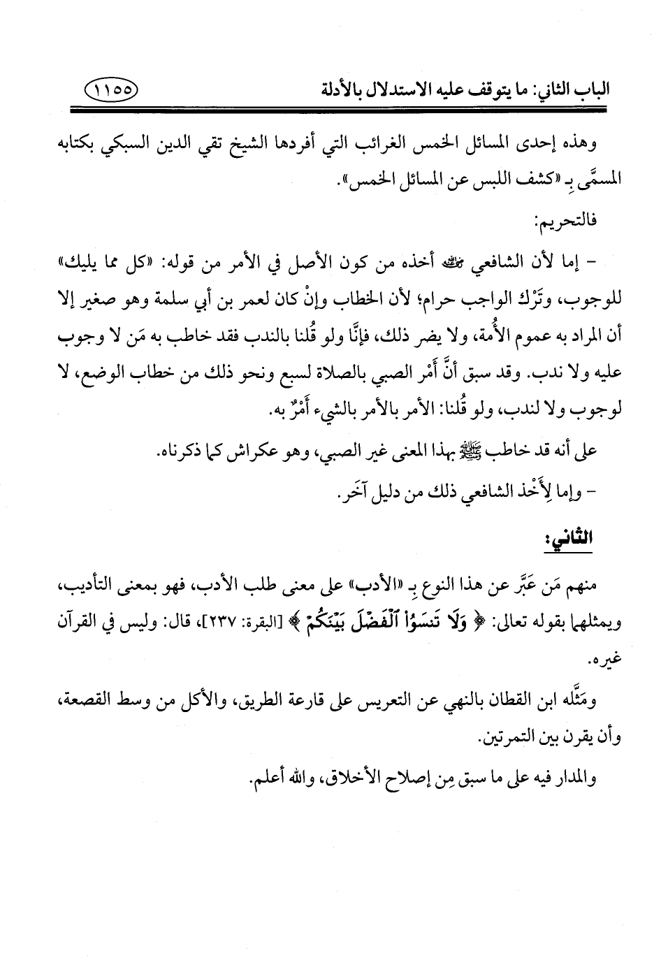 وهذه إحدى المسائل الخمس الغرائب التي أفردها الشيخ تقي الدين السبكي بكتابه المسمَّى بِـ"كشف اللبس عن المسائل الخمس".