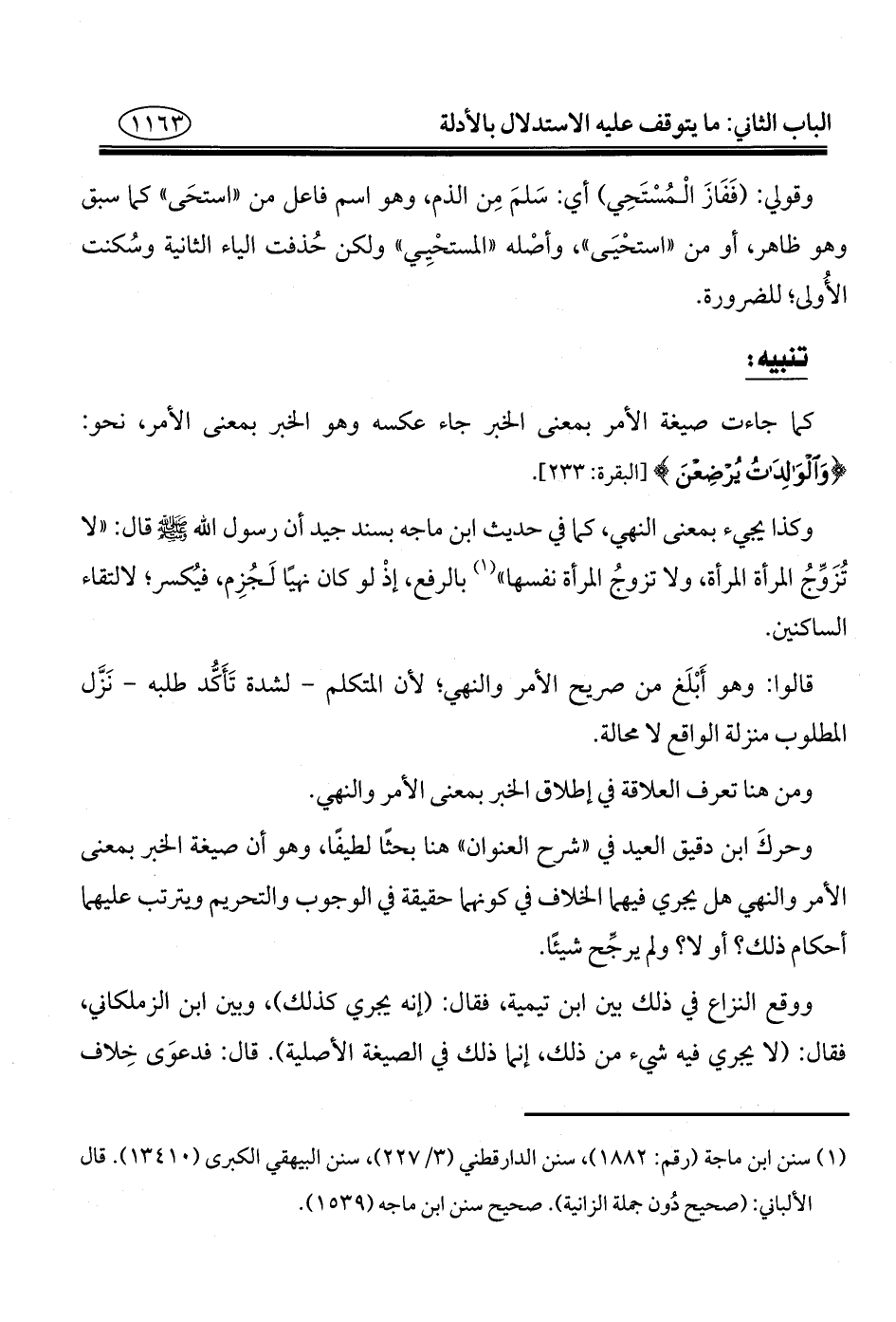 وكذا يجيء بمعنى النهي، كما في حديث ابن ماجه بسند جيد أن رسول الله - صلى الله عليه وسلم - قال: "لا تُزَوِّجُ المرأة المرأة، ولا تزوجُ المرأة نفسها" (¬١) بالرفع، إذْ لو كان نهيًا لَجُزِم، فيُكسر؛ لالتقاء الساكنين.