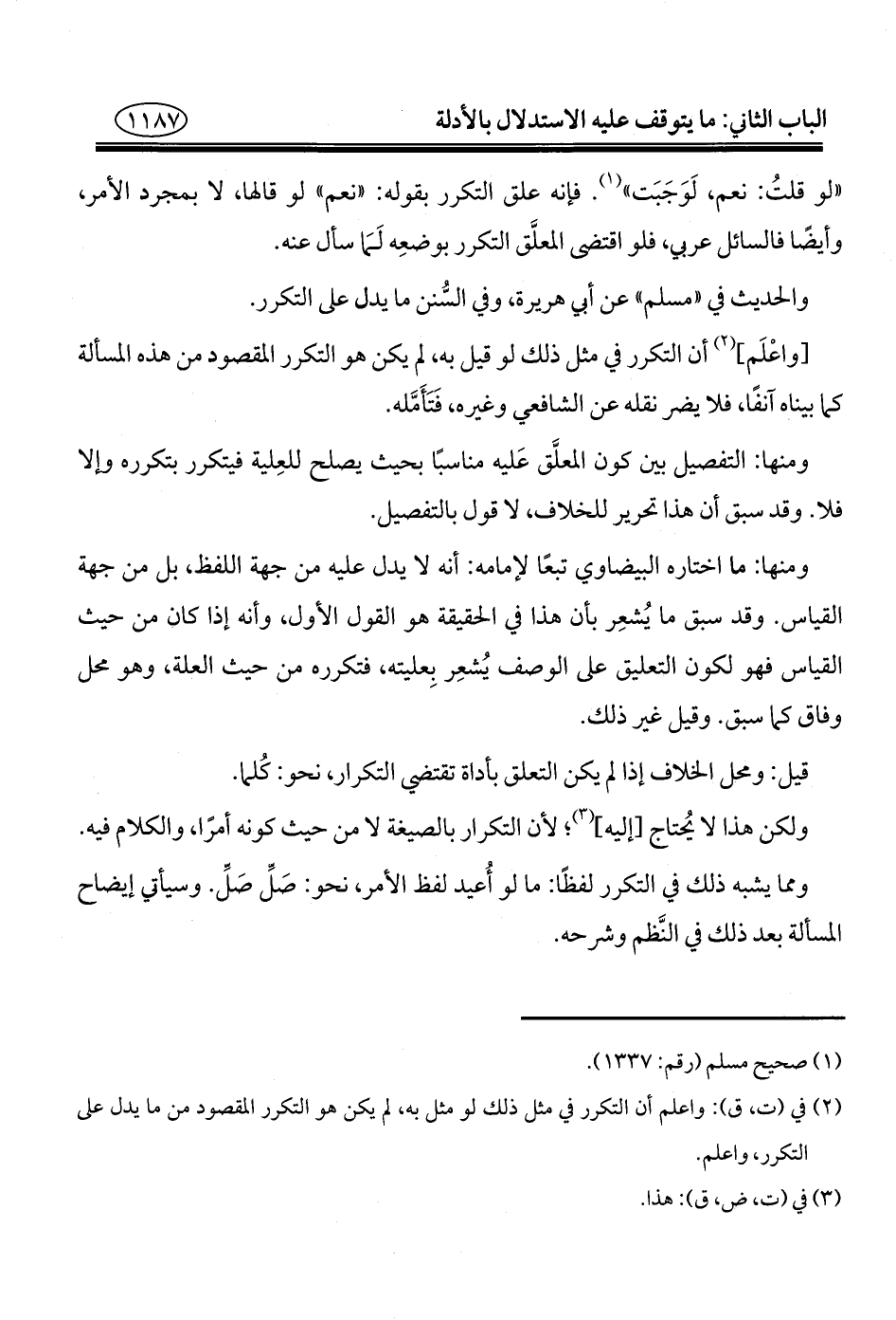 (¬٢) في (ت، ق): واعلم أن التكرر في مثل ذلك لو مثل به، لم يكن هو التكرر المقصود من ما يدل على التكرر، واعلم.