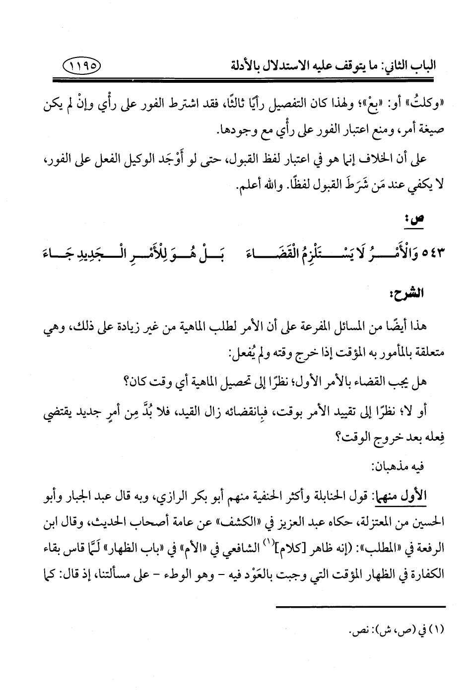 ٥٤٣ - وَالْأَمْرُ لَا يَسْتَلْزِمُ الْقَضَاءَ ... بَلْ هُوَ لِلْأَمْرِ الْجَدِيدِ جَاءَ