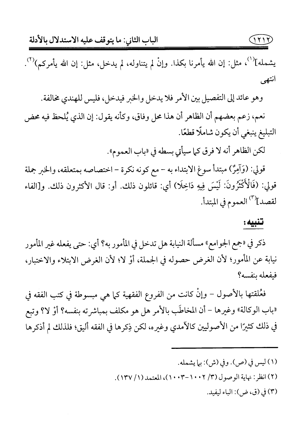 (¬٢) انظر: نهاية الوصول (٣/ ١٠٠٢ - ١٠٠٣)، المعتمد (١/ ١٣٧).