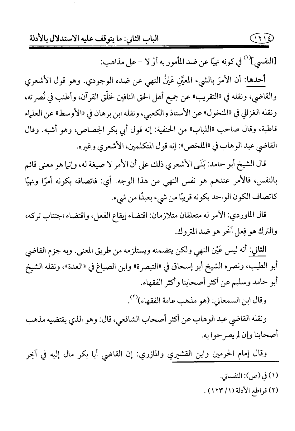 (¬٢) قواطع الأدلة (١/ ١٢٣).