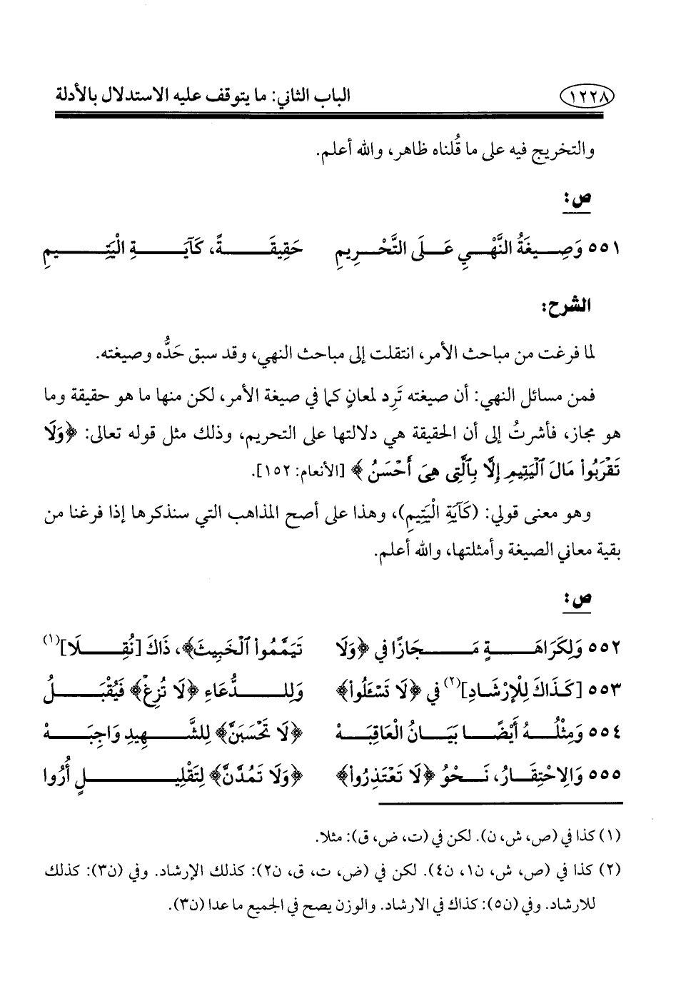 ٥٥١ - وَصِيغَةُ النَّهْيِ عَلَى التَّحْرِيمِ ... حَقِيقَةً، كَآبَةِ الْيَتِيمِ