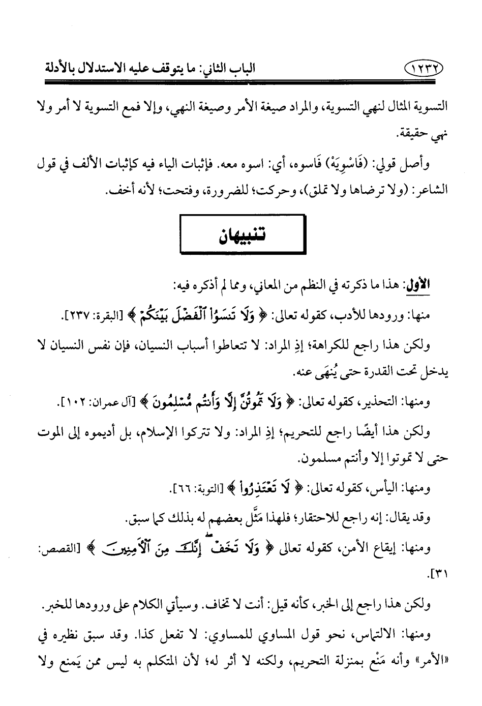 التسوية المثال لنهي التسوية، والمراد صيغة الأمر وصيغة النهي، وإلا فمع التسوية لا أمر ولا نهي حقيقة.