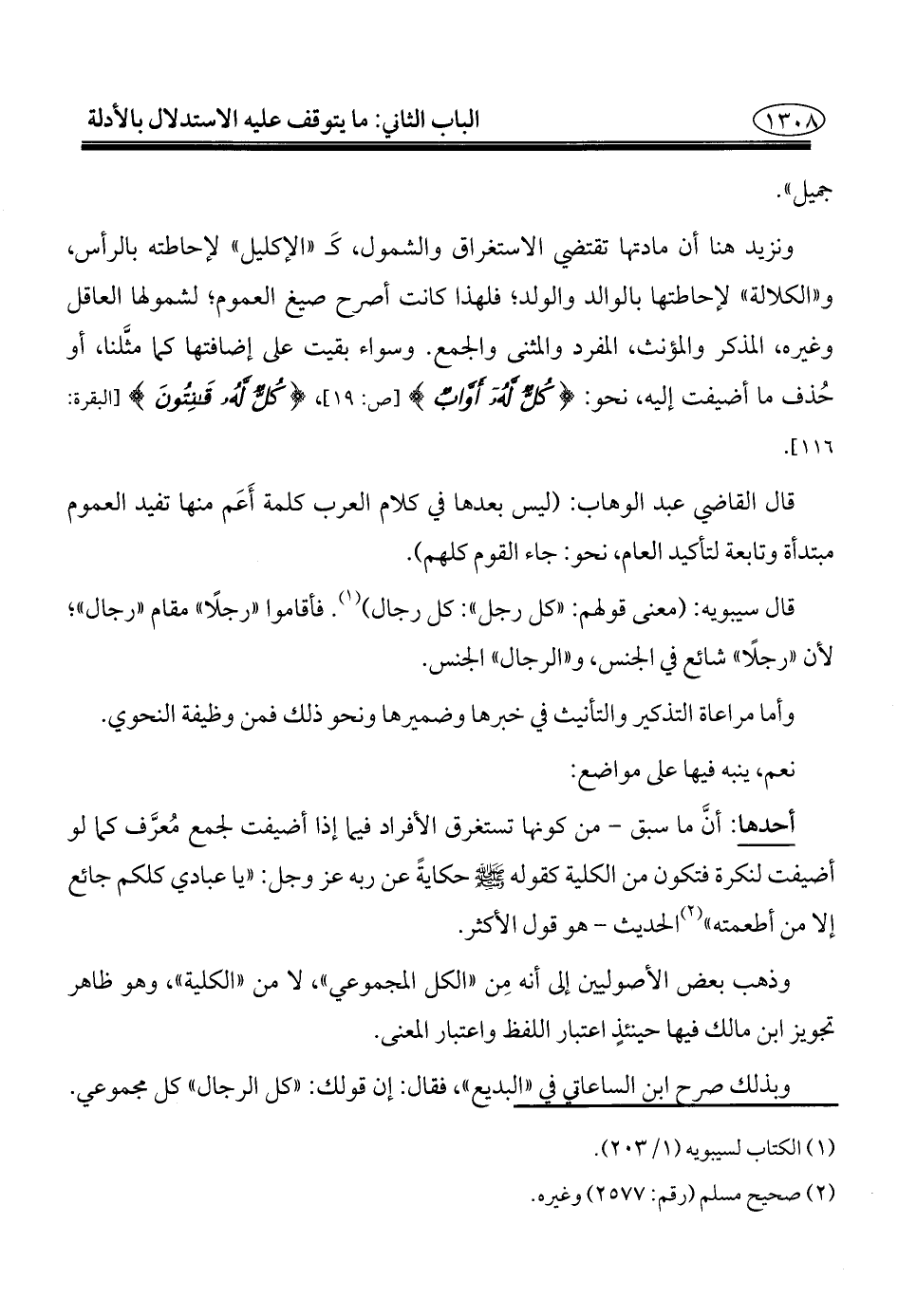 وبذلك صرح ابن الساعاتى فى "البديع"، فقال: إن قولك: "كل الرجال" كل مجموعي.