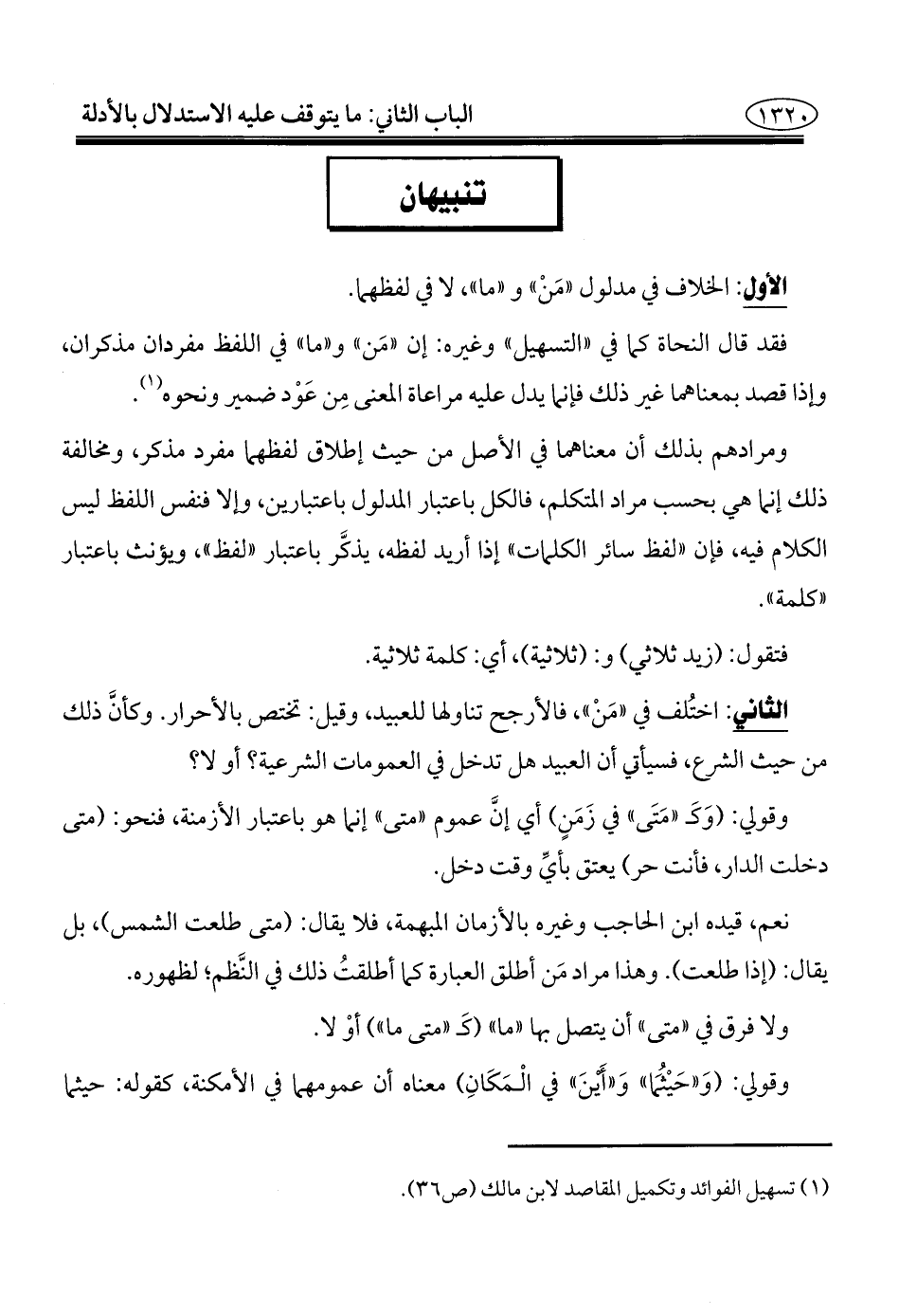 (¬١) تسهيل الفوائد وتكميل المقاصد لابن مالك (ص ٣٦).