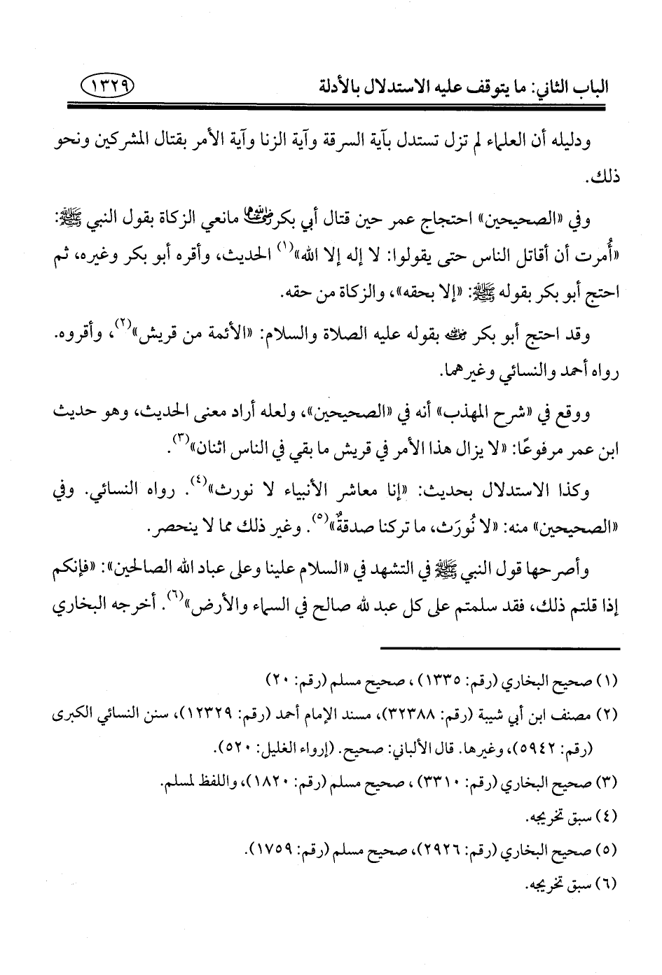 وفي "الصحيحين" احتجاج عمر حين قتال أبي بكر -رضي الله عنها- مانعي الزكاة بقول النبي -صلى الله عليه وسلم-: "أُمرت أن أقاتل الناس حتى يقولوا: لا إله إلا الله" (¬١) الحديث، وأقره أبو بكر وغيره، ثم احتج أبو بكر بقوله -صلى الله عليه وسلم-: "إلا بحقه"، والزكاة من حقه.