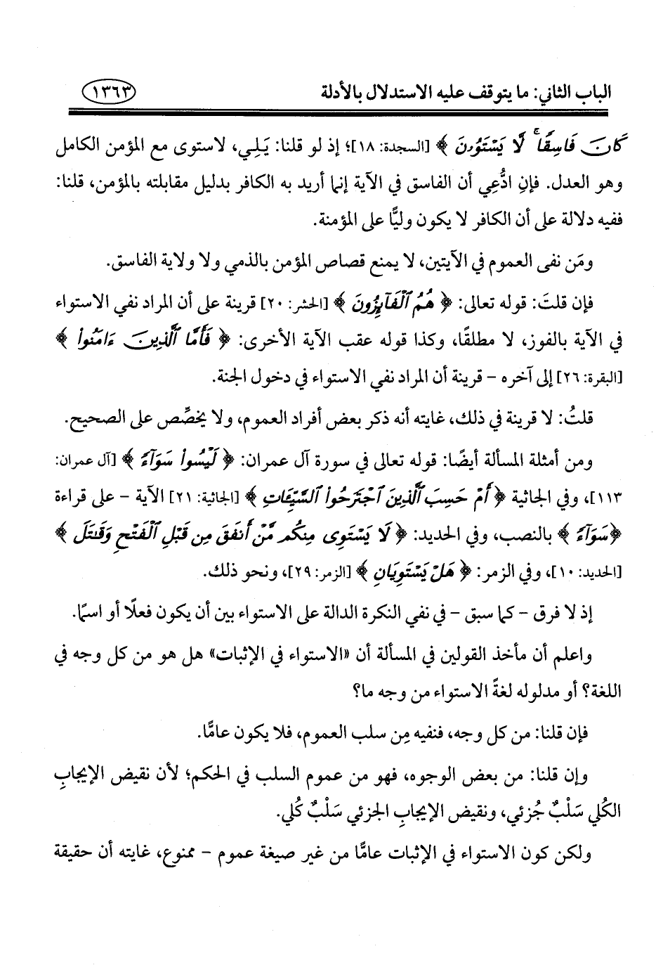 ولكن كون الاستواء في الإثبات عامًّا من غير صيغة عموم -ممنوع، غايته أن حقيقة