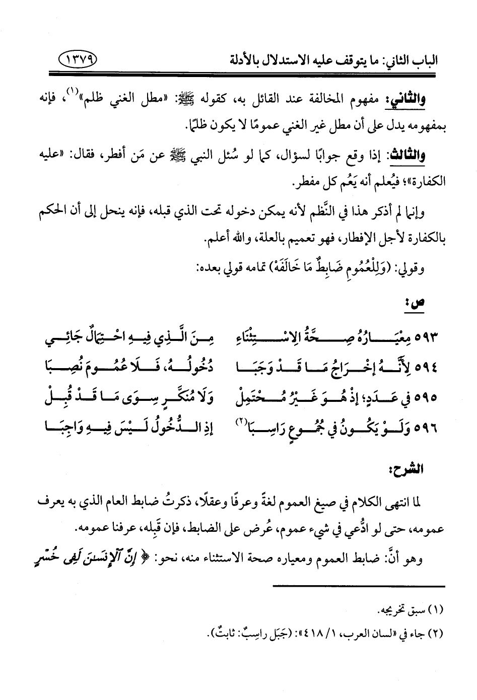 وقولي: (وَللْعُمُومِ ضَابِطٌ مَا خَالَفَهْ) تمامه قولي بعده: