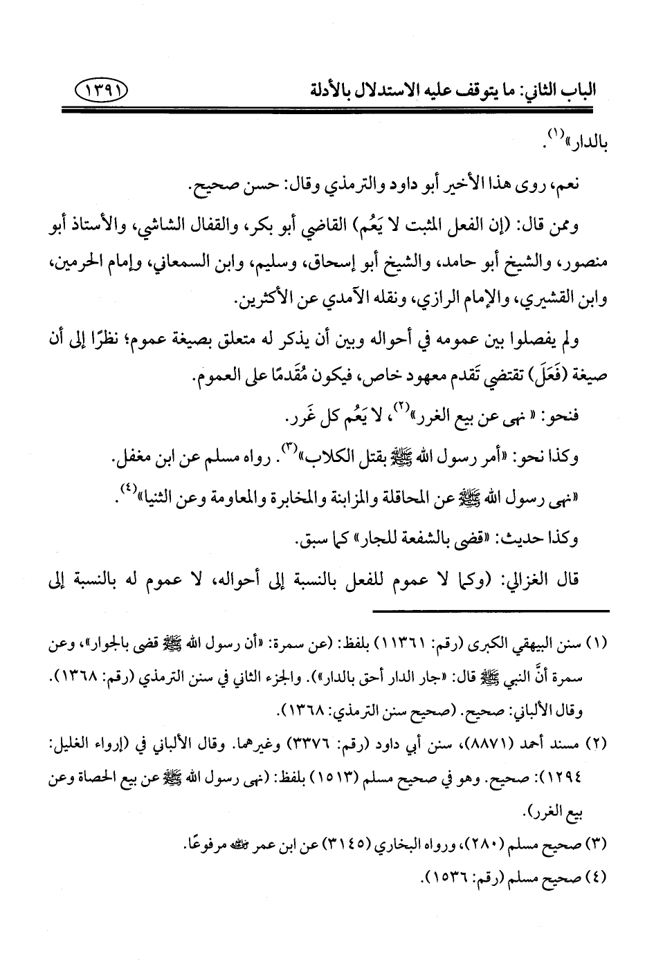 قال الغزالي: (وكما لا عموم للفعل بالنسبة إلى أحواله، لا عموم له بالنسبة إلى
