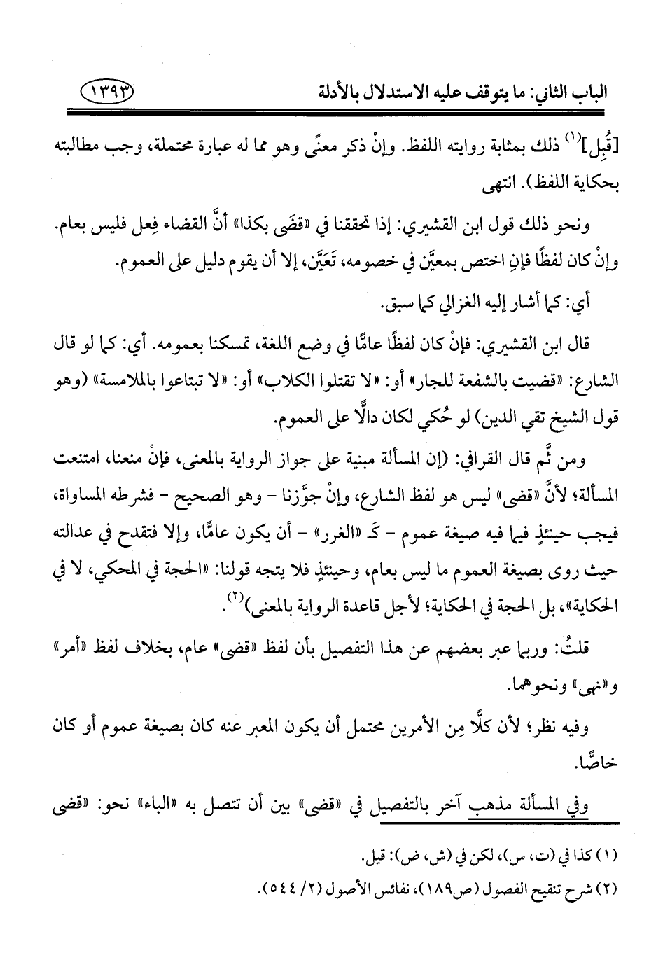 (¬٢) شرح تنقيح الفصول (ص ١٨٩)، نفائس الأصول (٢/ ٥٤٤).