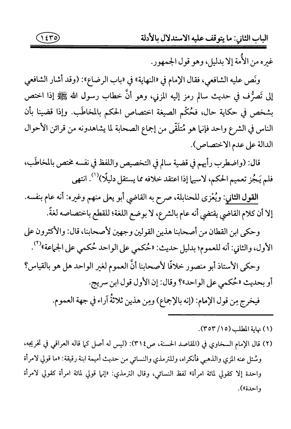 قال: (واضطرب رأيهم في قضية سالم في التخصيص واللفظ في نفسه مختص بالمخاطَب، فلم يَجُز تعميم الحكم، لاسيما إذا اعتقد خلافه مما يستقل دليلًا) (¬١). انتهى