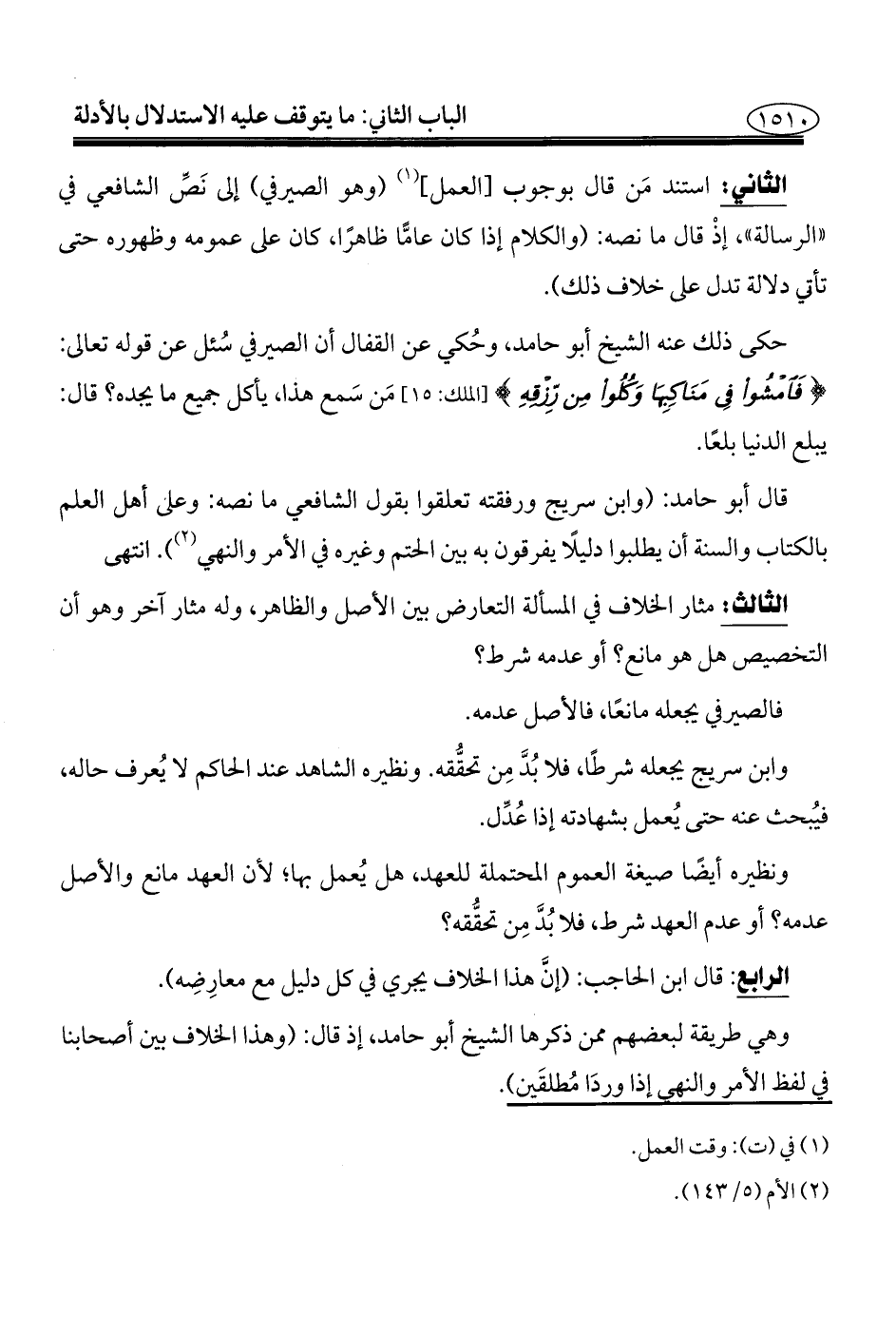 قال أبو حامد: (وابن سريج ورفقته تعلقوا بقول الشافعي ما نصه: وعلى أهل العلم بالكتاب والسنة أن يطلبوا دليلًا يفرقون به بين الحتم وغيره في الأمر والنهي) (¬٢). انتهى