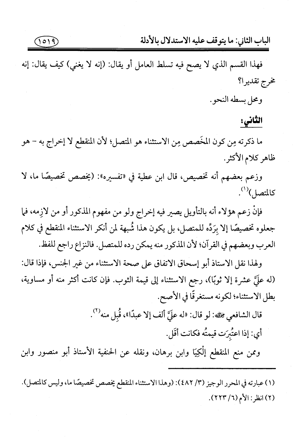(¬١) عبارته في المحرر الوجيز (٣/ ٤٨٢): (وهذا الاستثناء المنقطع يخصص تخصيصًا ما، وليس كالمتصل).