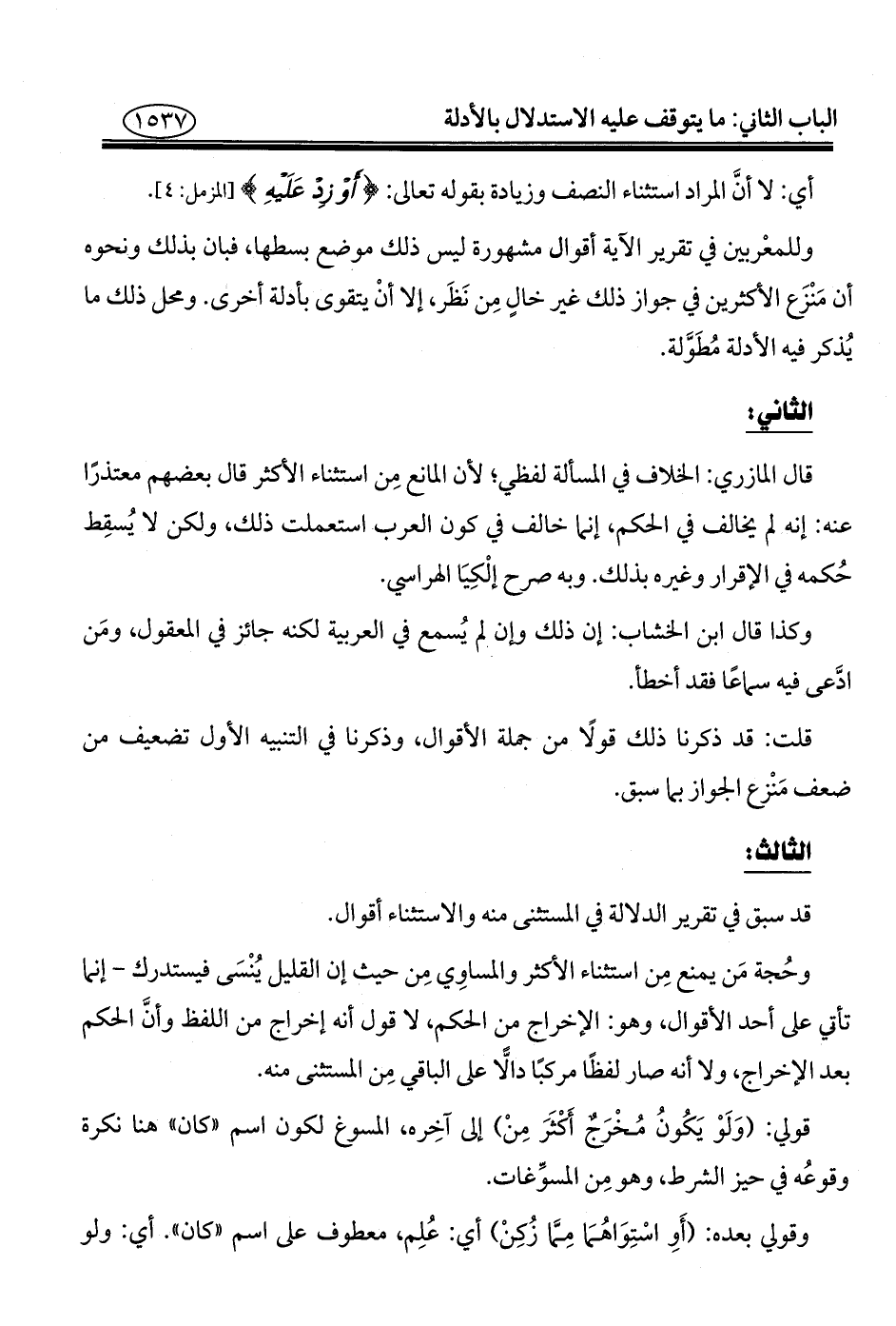 قال المازري: الخلاف في المسألة لفظي؛ لأن المانع مِن استثناء الأكثر قال بعضهم معتذرًا عنه: إنه لم يخالف في الحكم، إنما خالف في كون العرب استعملت ذلك، ولكن لا يُسقِط حُكمه في الإقرار وغيره بذلك. وبه صرح إلْكِيَا الهراسي.