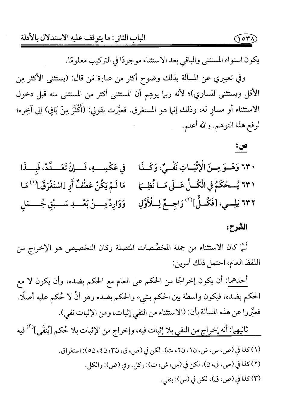 (¬١) كذا في (ص، س، ش، ن ١، ن ٢، ت). لكن في (ض، ق، ن ٣، ن ٤، ن ٥): استغراق.