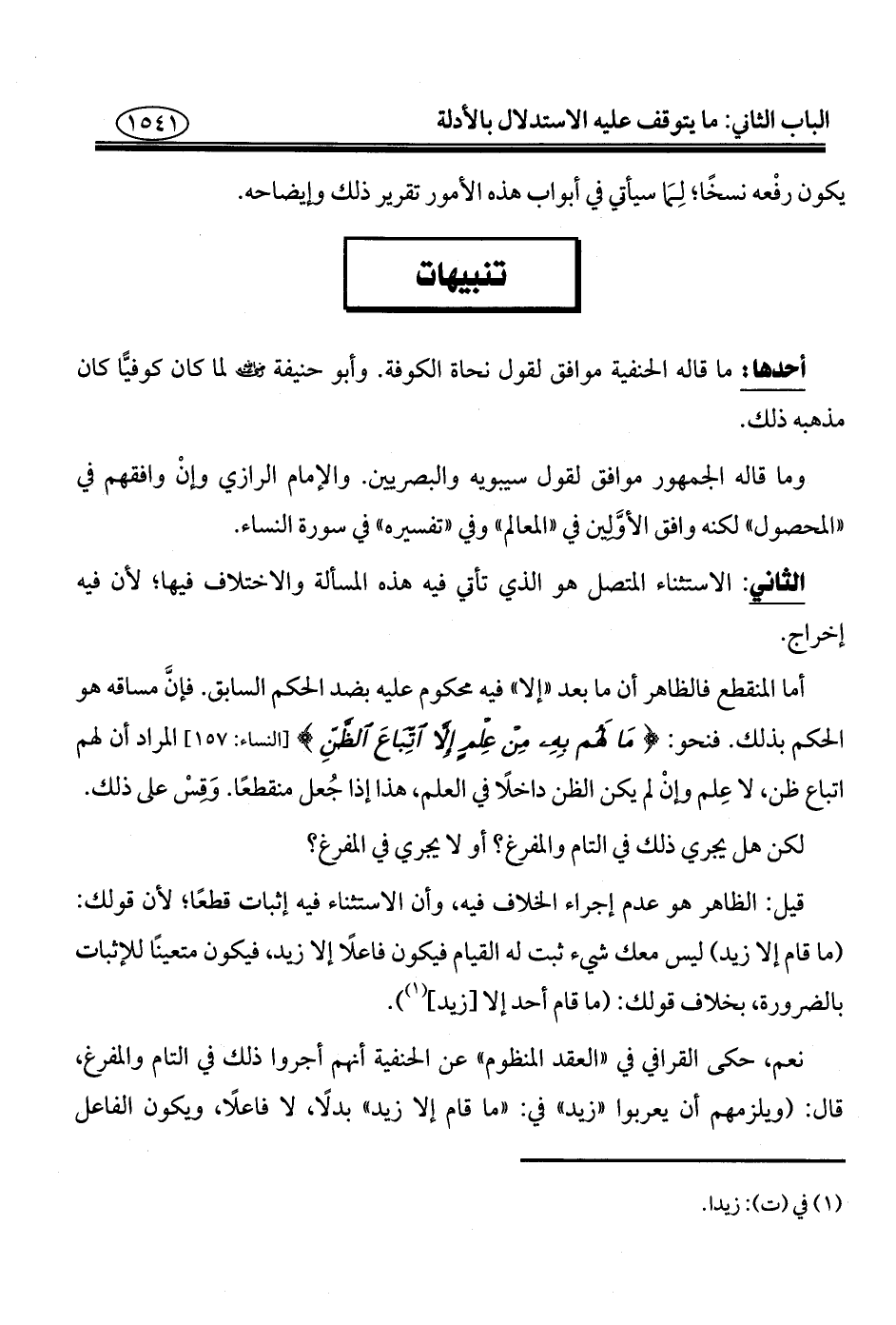 وما قاله الجمهور موافق لقول سيبويه والبصريين. والإمام الرازي وإنْ وافقهم في "المحصول" لكنه وافق الأوَّلِين في "المعالم" وفي "تفسيره" في سورة النساء.