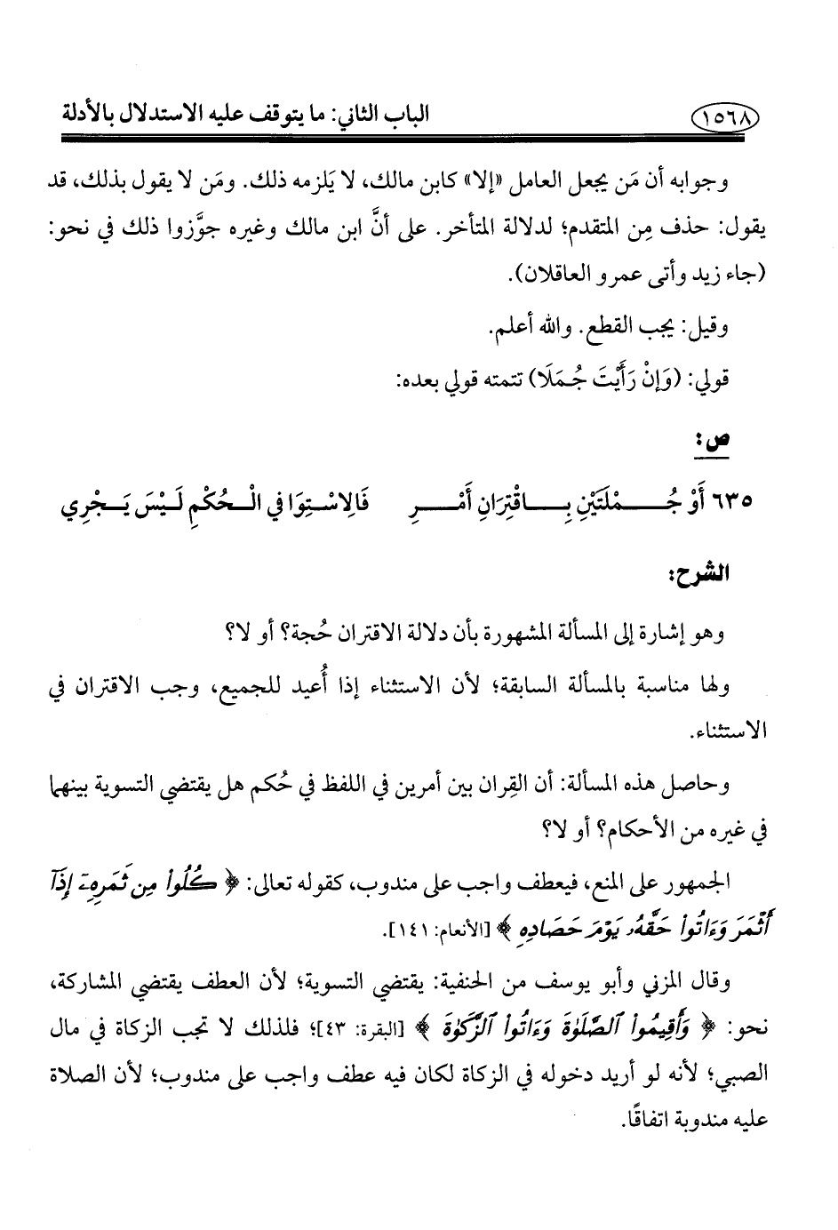 ٦٣٥ - أَوْ جُمْلَتَيْنِ بِاقْتِرَانِ أَمْرِ ... فَالِاسْتِوَا في الْحُكْمِ لَيْسَ يَجْرِي