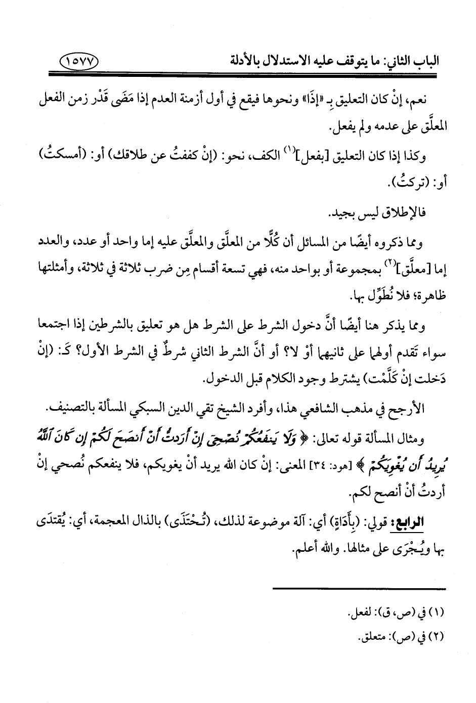 ومما ذكروه أيضًا من المسائل أن كُلًّا من المعلَّق والمعلَّق عليه إما واحد أو عدد، والعدد إما [معلَّق] (¬٢) بمجموعة أو بواحد منه، فهي تسعة أقسام مِن ضرب ثلاثة في ثلاثة، وأمثلتها ظاهرة؛ فلا نُطَوِّل بها.