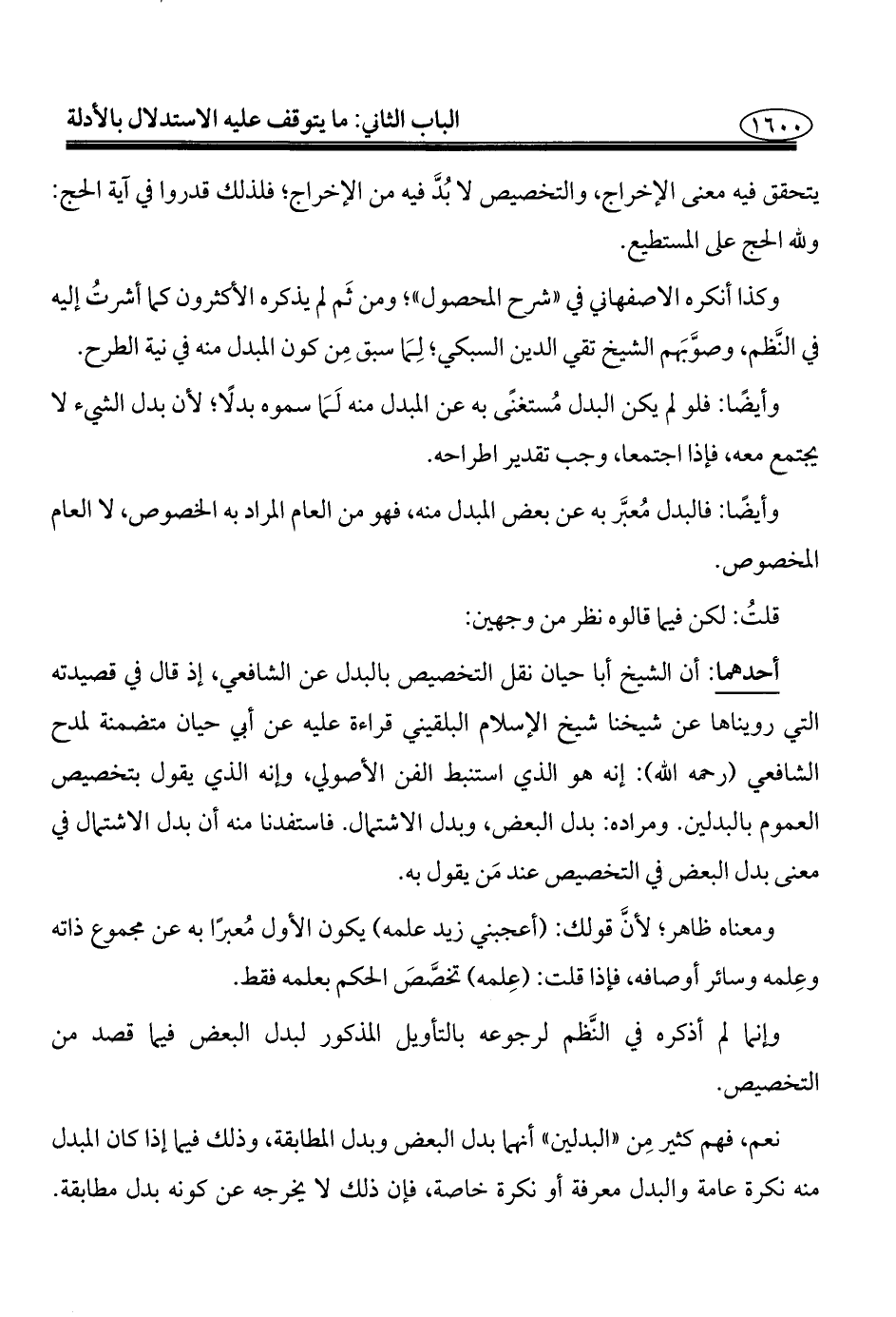 وأيضًا: فالبدل مُعبَّر به عن بعض المبدل منه، فهو من العام المراد به الخصوص، لا العام المخصوص.