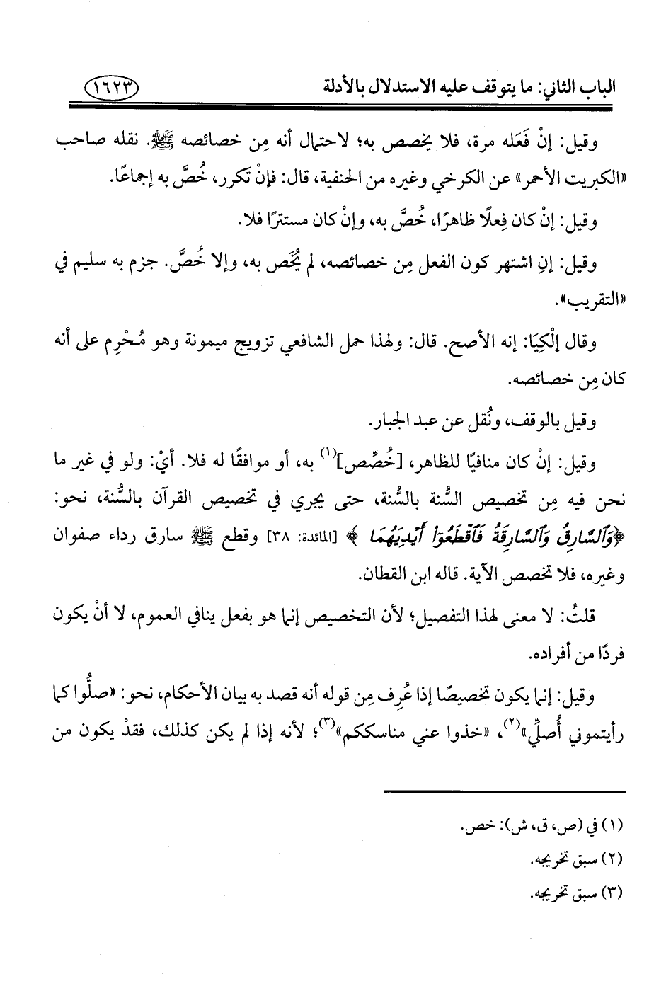 وقيل: إنما يكون تخصيصًا إذا عُرِف مِن قوله أنه قصد به بيان الأحكام، نحو: "صلُّوا كما رأيتموني أُصلِّي" (¬٢)، "خذوا عني مناسككم" (¬٣)؛ لأنه إذا لم يكن كذلك، فقدْ يكون من