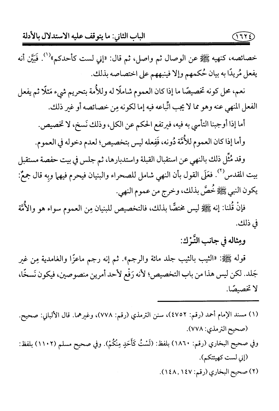 فإنْ قُلنا: إنه - صلى الله عليه وسلم - ليس مختصًّا بذلك، فالتخصيص للبنيان مِن العموم سواء هو والأُمَّة في ذلك.