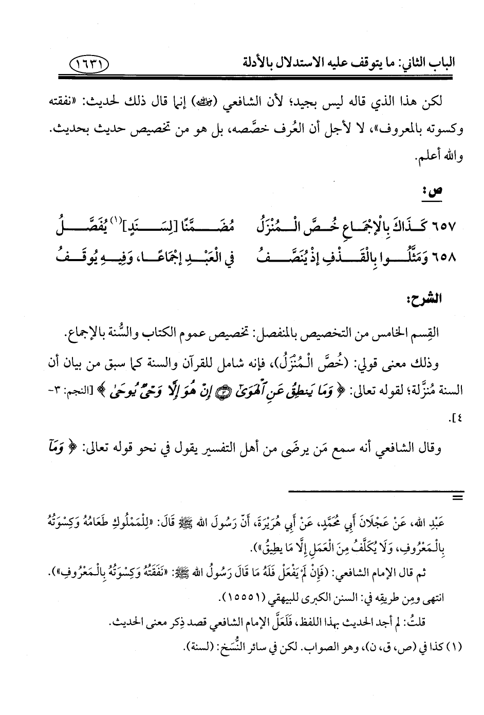 ٦٥٧ - كَذَاكَ بِالْإجْمَاعِ خُصَّ الْمُنْزَلُ ... مُضَمَّنًا [لِسَنَدٍ] (¬١) يُفَصَّلُ