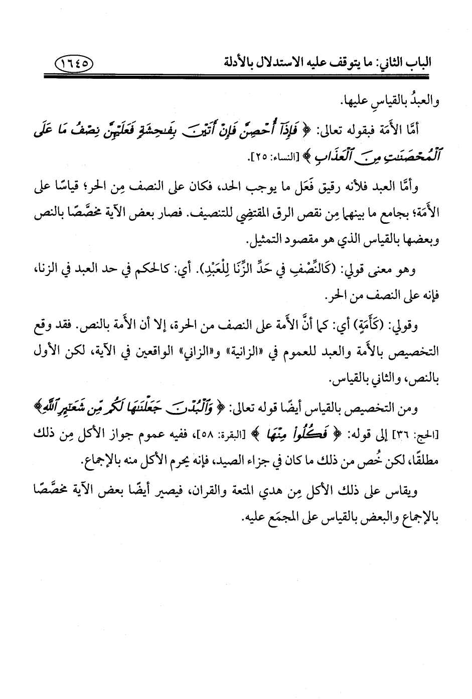 وقولي: (كَأَمَةٍ) أي: كما أنَّ الأَمة على النصف من الحرة، إلا أن الأَمة بالنص. فقد وقع التخصيص بالأَمة والعبد للعموم في "الزانية" و"الزاني" الواقعين في الآية، لكن الأول بالنص، والثاني بالقياس.