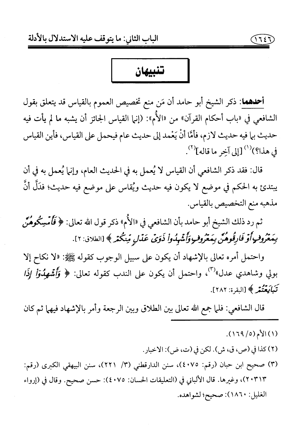 ثم رد ذلك الشيخ أبو حامد بأن الشافعي في "الأُم" ذكر قول الله تعالى: {فَأَمْسِكُوهُنَّ بِمَعْرُوفٍ أَوْ فَارِقُوهُنَّ بِمَعْرُوفٍ وَأَشْهِدُوا ذَوَيْ عَدْلٍ مِنْكُمْ} [الطلاق: ٢].