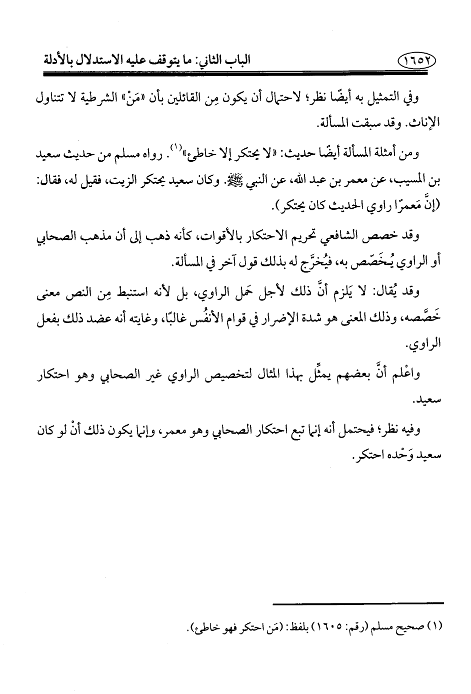 واعْلم أنَّ بعضهم يمثِّل بهذا المثال لتخصيص الراوي غير الصحابي وهو احتكار سعيد.