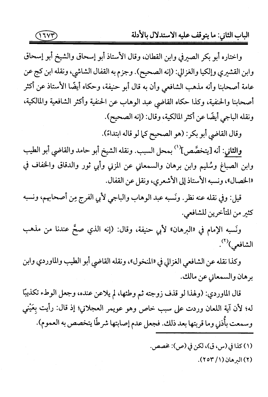 واختاره أبو بكر الصيرفي وابن القطان، وقال الأستاذ أبو إسحاق والشيخ أبو إسحاق وابن القشيري وإلكيا والغزالي: (إنه الصحيح). وجزم به القفال الشاشي، ونقله ابن كج عن عامة أصحابنا وأنه مذهب الشافعي وأن به قال أبو حنيفة، وحكاه أيضًا الأستاذ عن أكثر أصحابنا والحنفية، وكذا حكاه القاضي عبد الوهاب عن الحنفية وأكثر الشافعية والمالكية، ونقله الباجي أيضًا عن أكثر المالكية، وقال: (إنه الصحيح).