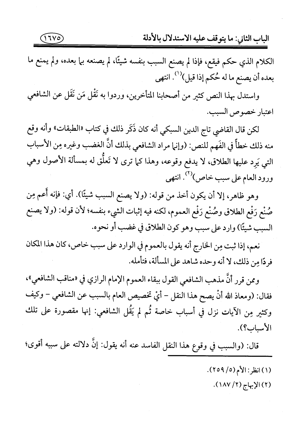 واستدل بهذا النص كثير من أصحابنا المتأخرين، وردوا به نَقْل مَن نَقَل عن الشافعي اعتبار خصوص السبب.