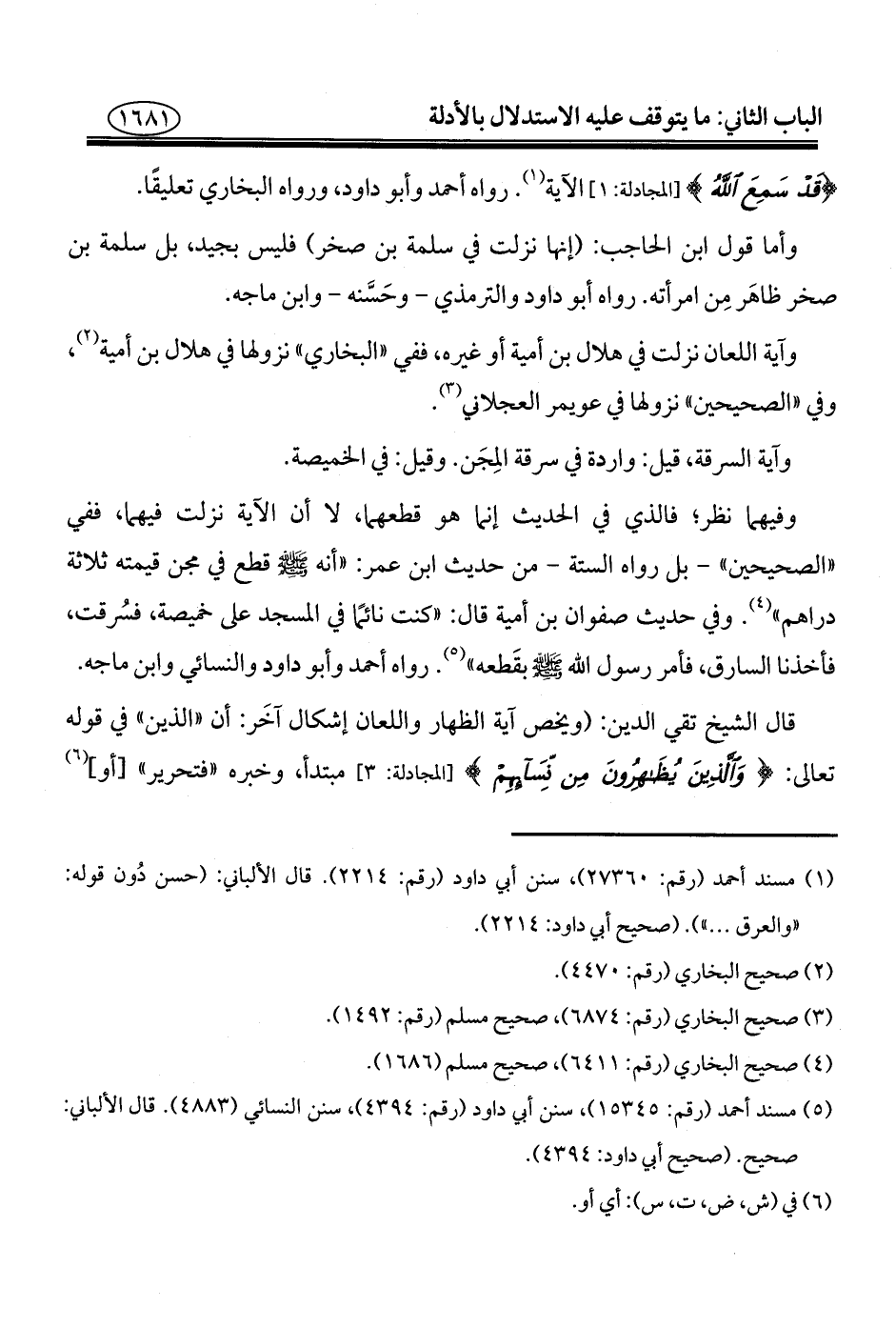 وأما قول ابن الحاجب: (إنها نزلت في سلمة بن صخر) فليس بجيد، بل سلمة بن صخر ظاهَر مِن امرأته. رواه أبو داود والترمذي -وحَسَّنه- وابن ماجه.