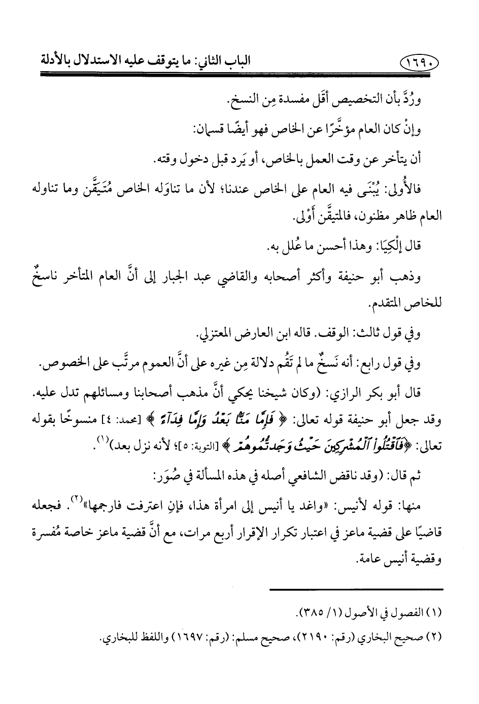 وفي قول رابع: أنه نَسخٌ ما لم تَقُم دلالة مِن غيره على أنَّ العموم مرتَّب على الخصوص.