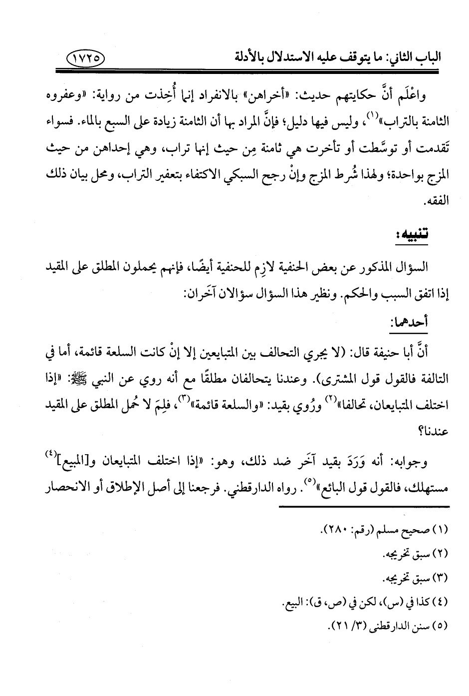 السؤال المذكور عن بعض الحنفية لازِم للحنفية أيضاً، فإنهم يحملون المطلق على المقيد إذا اتفق السبب والحكم. ونظير هذا السؤال سؤالان آخَران: