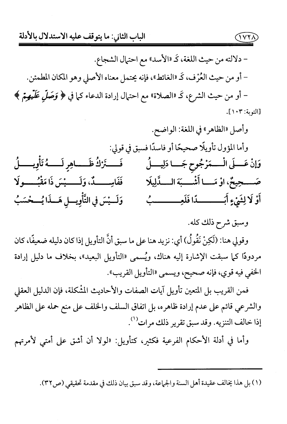 وَإنْ عَلَى الْمَرْجُوحِ جَا دَلِيلُ ... فَتَرْكُ ظَاهِرٍ لَهُ تَأْوِيلُ