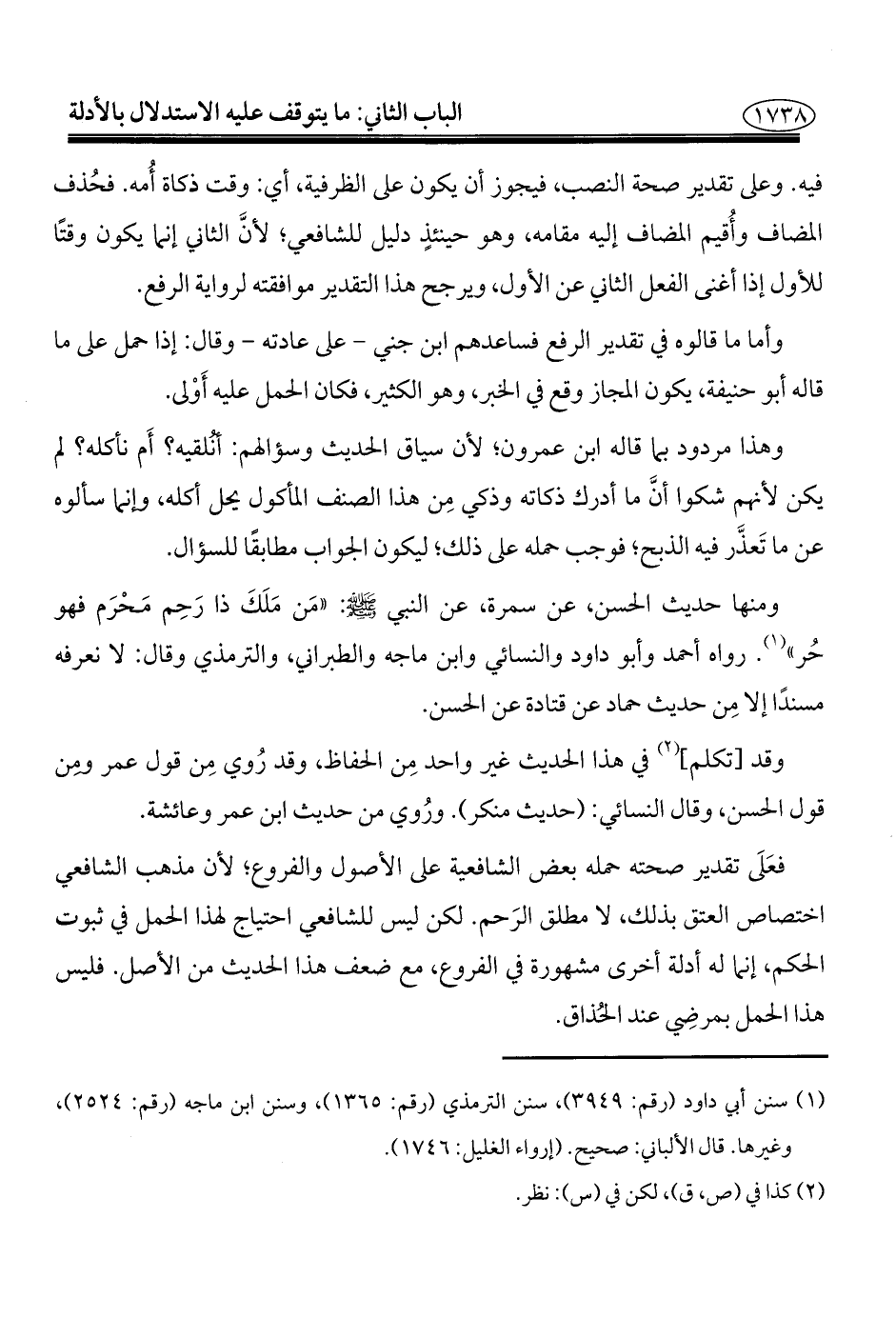 (¬١) سنن أبي داود (رقم: ٣٩٤٩)، سنن التِّرمذيُّ (رقم: ١٣٦٥)، وسنن ابن ماجة (رقم: ٢٥٢٤)، وغيرها. قال الألباني: صحيح. (إرواء الغليل: ١٧٤٦).