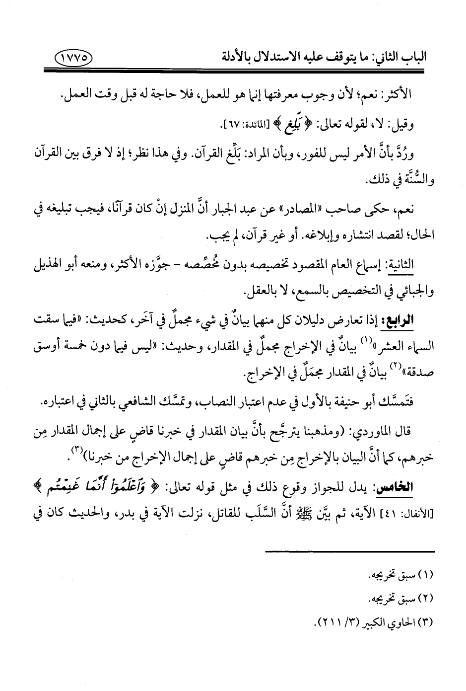 قال الماوردي: (ومذهبنا يترجَّح بأنَّ بيان المقدار في خبرنا قاضٍ على إجمال المقدار مِن خبرهم، كما أنَّ البيان بالإخراج مِن خبرهم قاضٍ على إجمال الإخراج من خبرنا) (¬٣).
