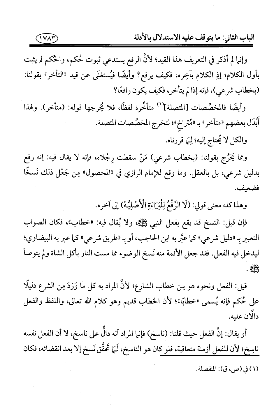 فإن قيل: النسخ قد يقع بفعل النبي - صلى الله عليه وسلم -، ولا يُقال فيه: "خطاب"، فكان الصواب التعبير بِ "دليل شرعي" كما عبَّر به ابن الحاجب، أو بِ "طريق شرعي" كما عبر به البيضاوي؛ ليدخل فيه الفعل. فقد جعل الأئمة منه نَسخ الوضوء مما مست النار بأكل الشاة ولم يتوضأ - صلى الله عليه وسلم -.